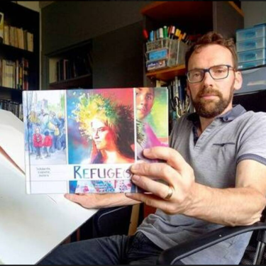 Né en 1977 à Rennes, Laurent LEFEUVRE est un auteur de bande dessinée, graphiste et illustrateur de folklore ainsi que cover artist principalement pour Komics Initiative. Chez ce dernier, il a entrepris dès 2020 la reprise de sa fameuse série Fox-Boy, (sorte de cousin breton de Spider-Man), dont le second tome figure dans la sélection officielle du Festival d’Angoulême en 2022. Passionné, il rejoint en 2013 le comité d’organisation du festival Quai des Bulles à Saint-Malo. Si Fox-Boy interroge notre rapport au réel, les reportages dessinés de Lefeuvre traitent de thématiques plus sociales et politiques. À ce titre, Refuge(s) est sans doute le plus ambitueux d’entre eux.